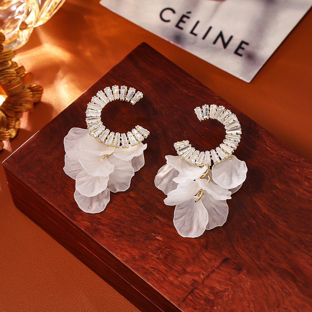 Floral Shell Acrylic with CZ and Chain Tassel