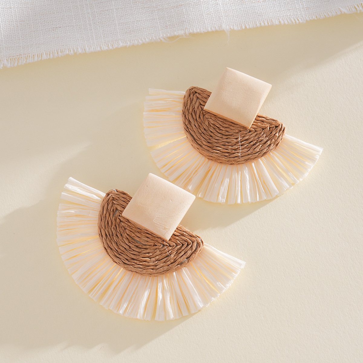 Raffia Sunflower Dangle Earrings with 925 Silver Posts